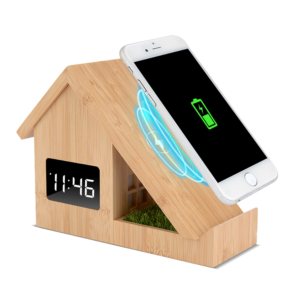 우드쇼 F011 홈 무선충전 리얼우드시계_흑경