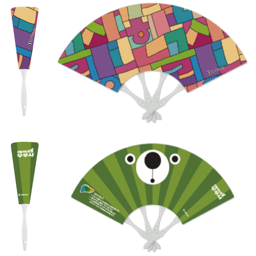 [2단] 나비손잡이(형광그린) 부채 (270x 157mm) - 양면컬러인쇄