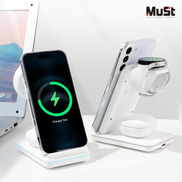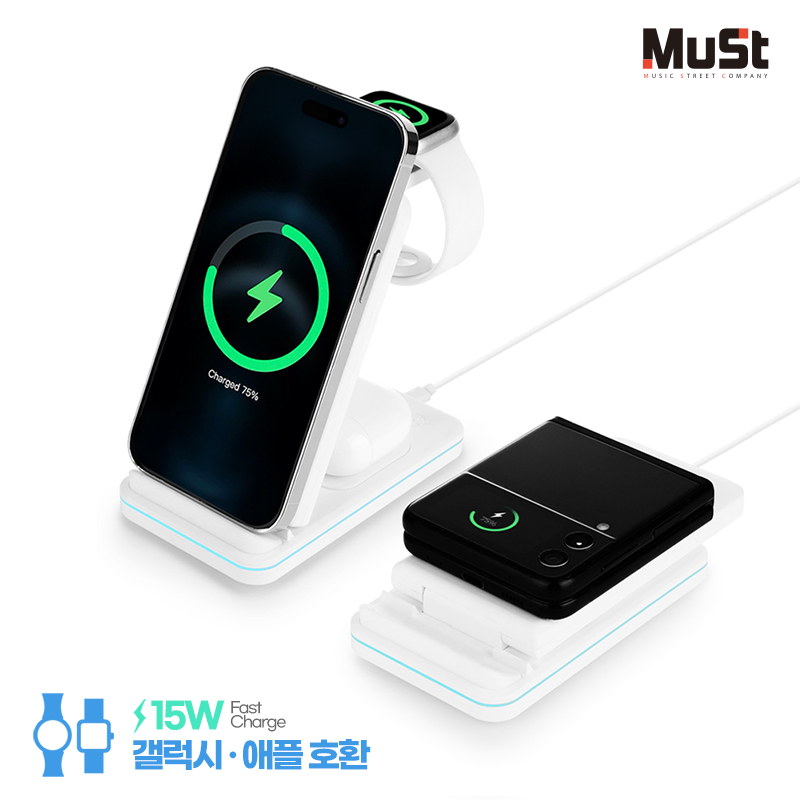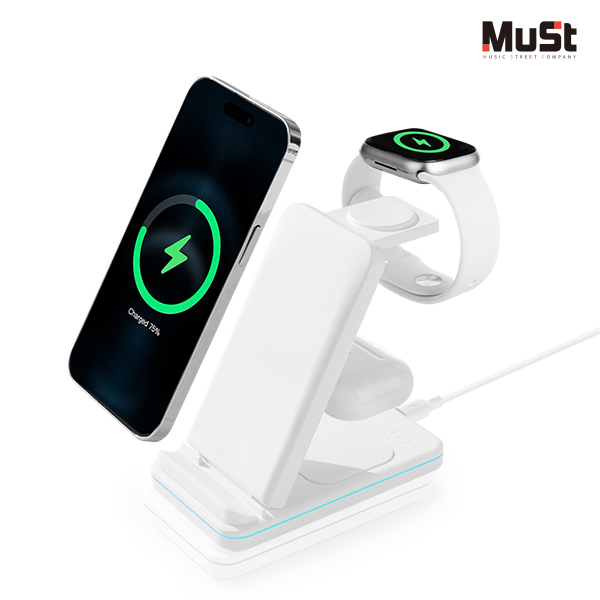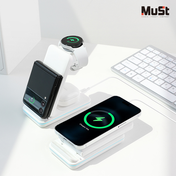 [뮤스트] 브릿지 3in1 접이식 고속무선충전기 (갤럭시/애플 기기호환)